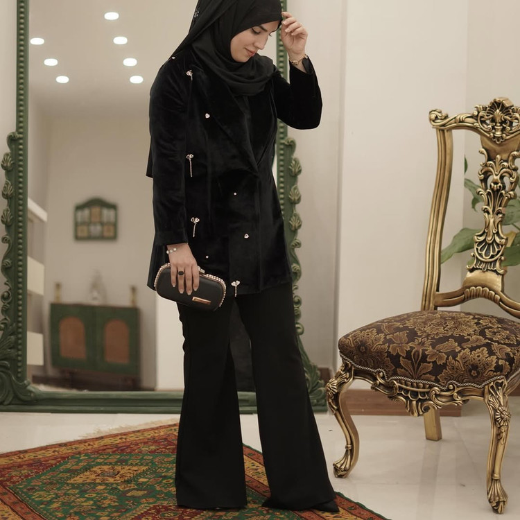 روی کت جواهردوزی انجام شده و برش و کیفیت کار در تصویر هم مشخصه.