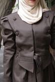 قسمت جلو مانتو دو تیکه به صورت جلیقه داره که قابلیت جدا شدن داره و مانتو رو ساده هم میتونید استفاده کنید.
