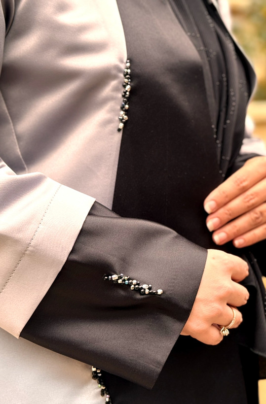 مانتو مجلسی زیبامون از سری کالکشن عید تقدیمتون میشه که بسیار تنخور شیکی داره. این مانتو در برش بسیار در دوخت زمان بر هست و سعی کردیم با یه قیمت عالی تقدیمتون کنیم تا بتونید خرید انجام بدید. ترکیب طوسی و مشکی همیشه یه ترکیب برنده است که بسیار در ست کردن دستتون رو باز میزاره😍😍