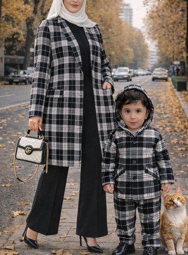 ست مادر و پسری مدل کت و شلوار کلاهدار | استایل هماهنگ و شیک خانوادگی